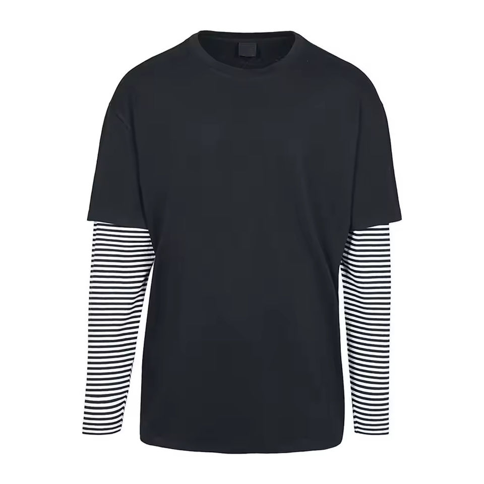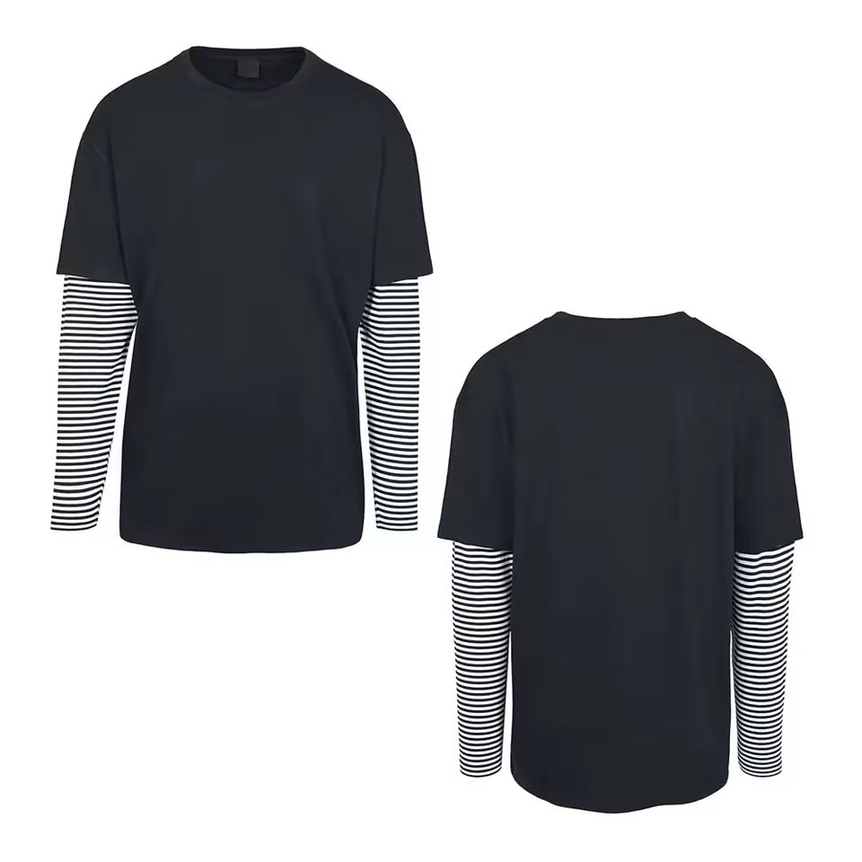 Custom Men T Shirts Blank Double Layer Sleeve Tee Shirt Unisex Double Layer Long Sleeve Patchwork Men's T-shirts