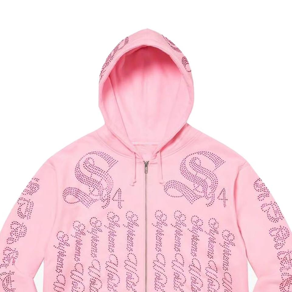 เสื้อฮู้ดดี้ผู้ชายผ้าเฟรนช์เทอร์รี่หนานุ่ม สไตล์สตรีทแวร์ ปักลายแบบดิสเทรส ประดับคริสตัลวิบวับ ซิปเต็มตัว พร้อมโลโก้คริสตัล