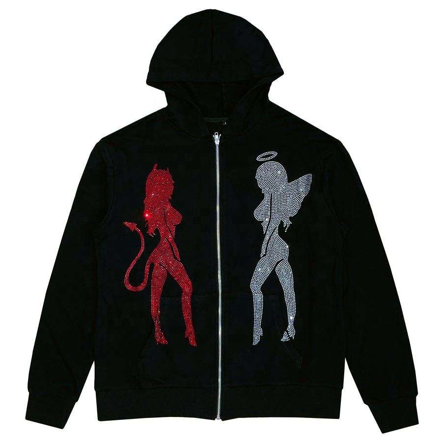 เสื้อฮู้ดมีซิปเต็มตัว ประดับพลอยเทียม พร้อมโลโก้