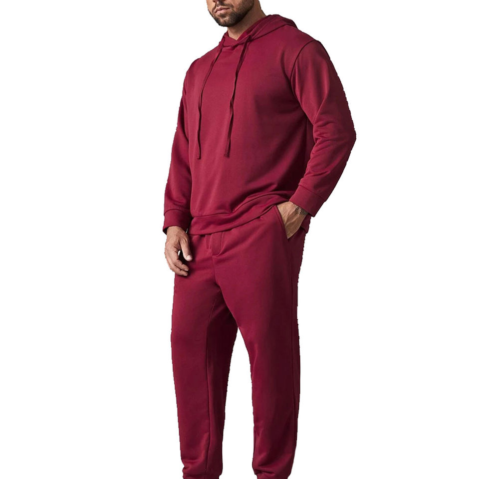 ชุดวอร์มสองชิ้นแบบสวมหัวสำหรับผู้ชายชุดออกกำลังกายเล่นกีฬาฟิตเนสแบบกำหนดเอง