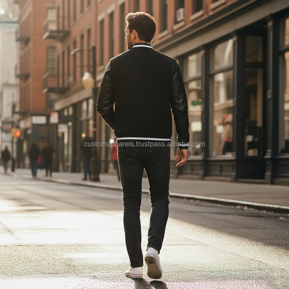 แจ็กเก็ตผ้าฟลีซสำหรับผู้ชายผ้าคอตตอนผ้ากำมะหยี่ปักด้วยหนังพียูหนังวีแกน