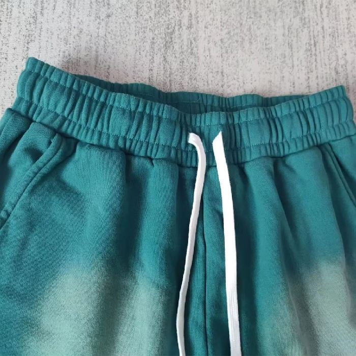 กางเกงขาสั้นผู้ชายสไตล์วินเทจ ย้อมสีซีดแบบดั้งเดิม ผ้าฝ้ายเรียบ ทรงจ็อกเกอร์ กางเกงกีฬาชาย มีเชือกผูกเอว ล้างสีแบบแอซิด ขอบดิบ กางเกงขาสั้นวินเทจ