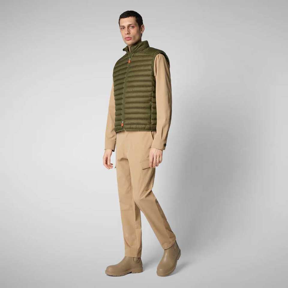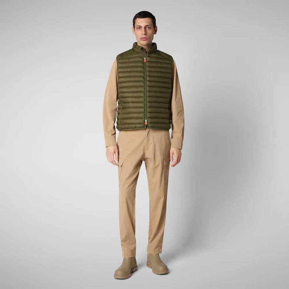 เสื้อกั๊กบุผ้านวมสำหรับผู้ชายแบบกำหนดเองสำหรับฤดูหนาว คอตั้ง แจ็คเก็ตสำหรับกิจกรรมกลางแจ้ง ดีไซน์ลายกวางมูสและลายปาล์มแบบยาว