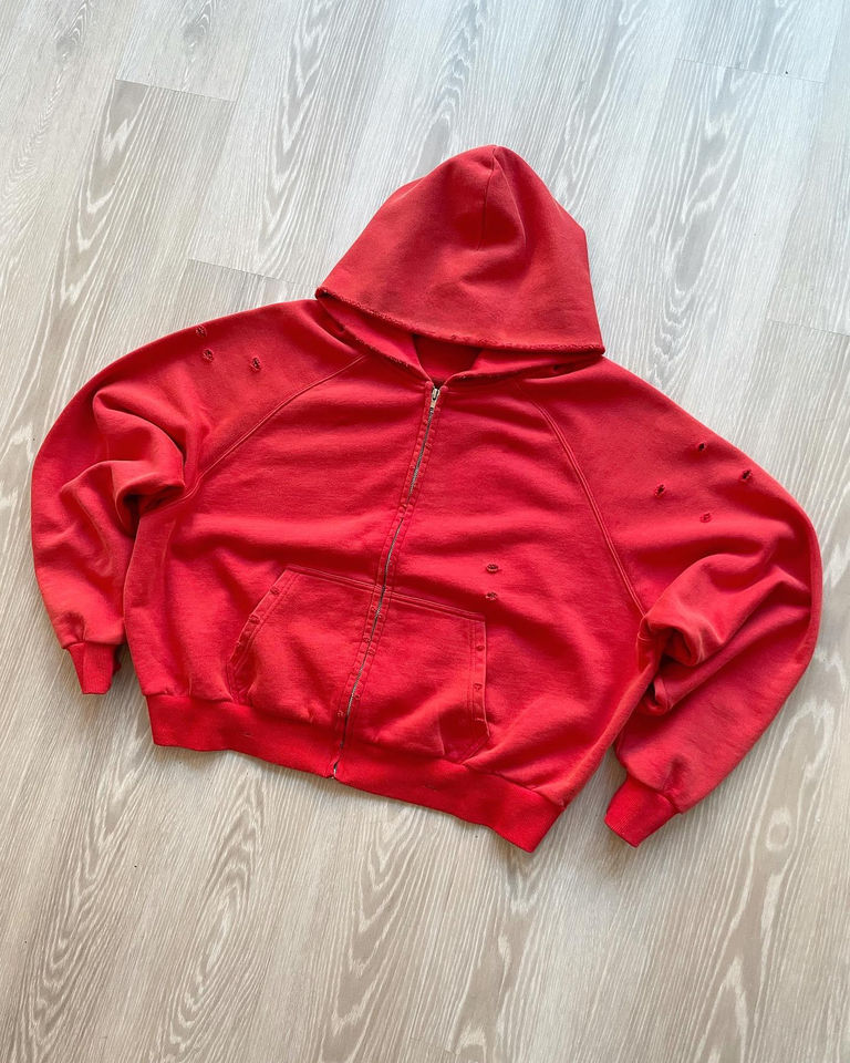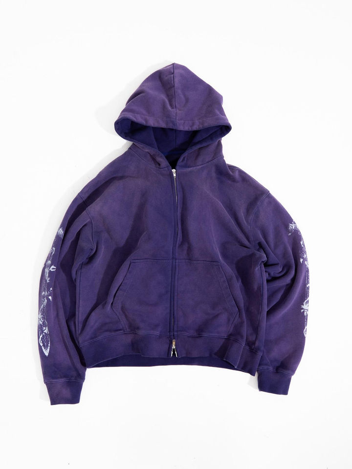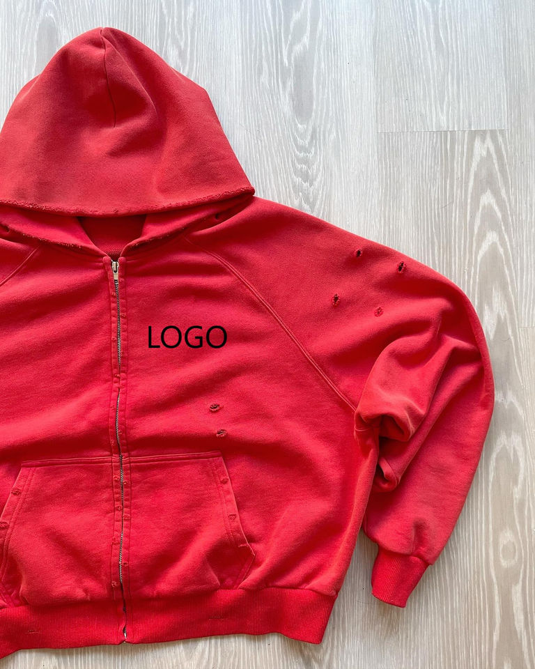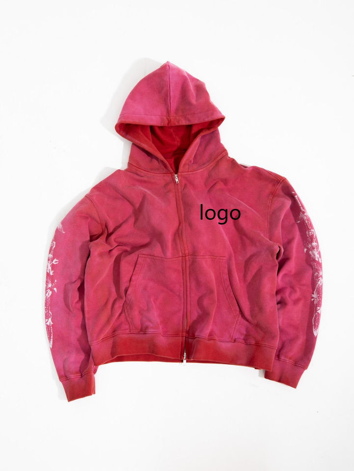 Custom Men Winter Zipper-Up Boxy French Terry Cotton Heavyweight Acid Wash Print Embroidered Logo Anti-Pilling Breathable Hoodie