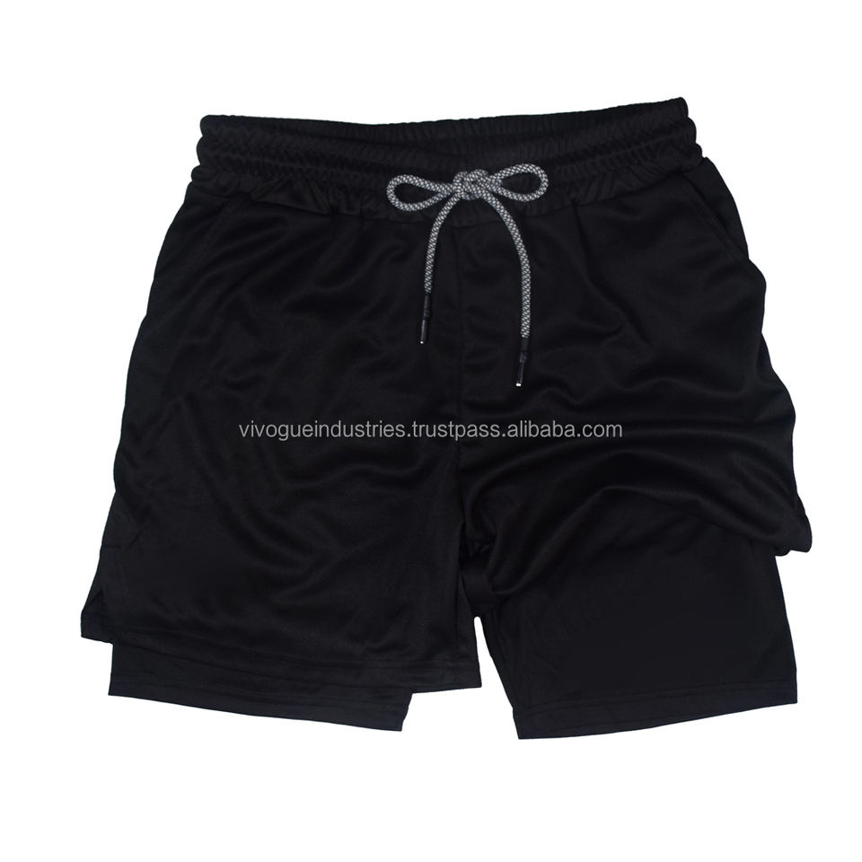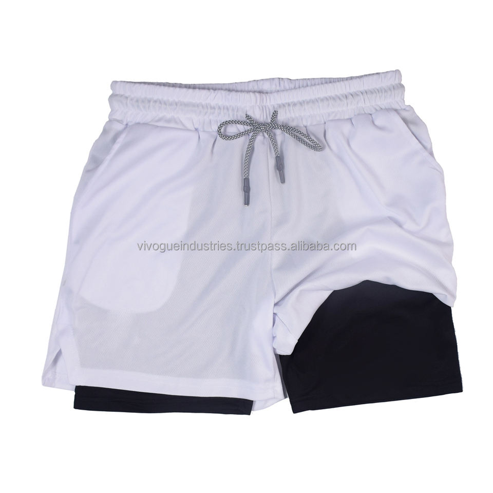 กางเกงขาสั้นรัดรูปมีกระเป๋าสองชั้นสำหรับผู้ชายผู้หญิงกางเกงขาสั้นออกกำลังกายพิมพ์ลายพราง