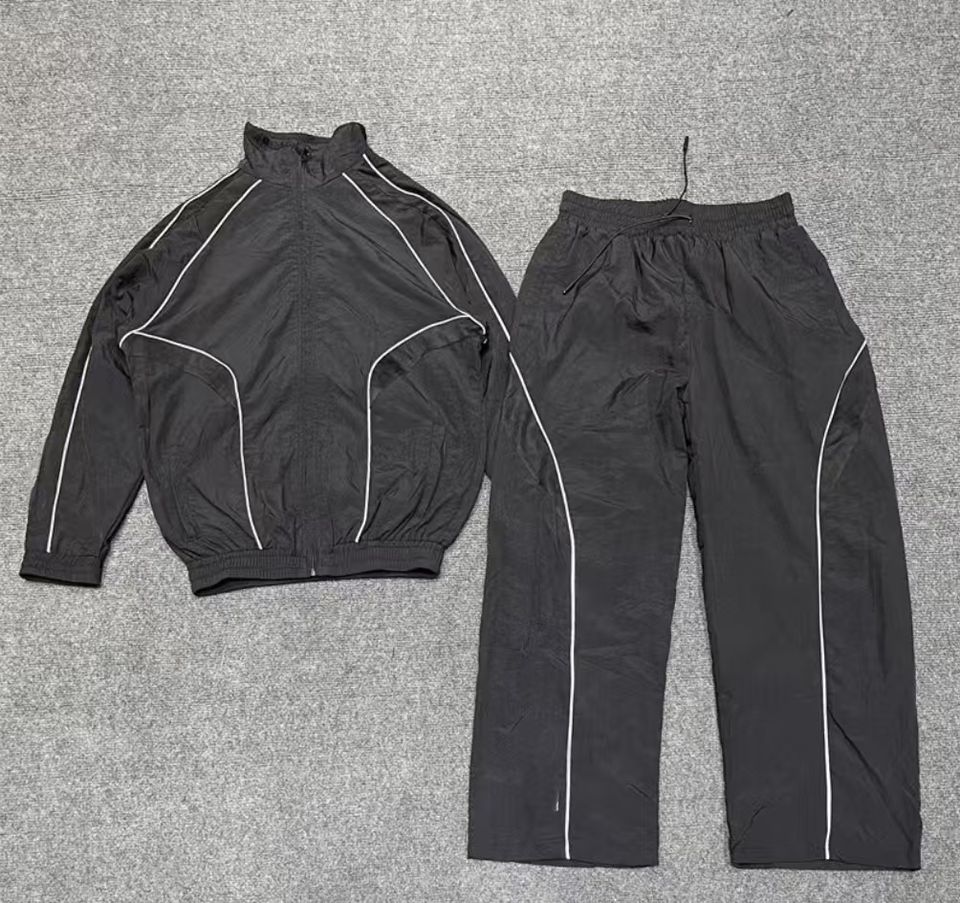 ชุดวอร์มไนลอนแบบมีซิปสำหรับผู้ชายและผู้หญิง เสื้อฮู้ดดี้ กางเกงจ็อกเกอร์ ชุดกีฬา กันลม พร้อมโลโก้สะท้อนแสง ขายส่ง 2026