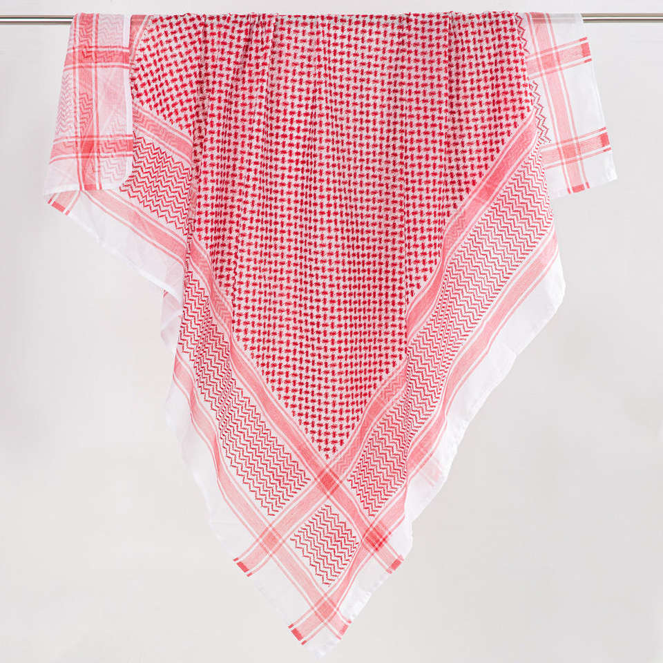 ผ้าคลุมศีรษะเคฟฟียะห์สีแดงและสีขาวแบบดั้งเดิมของซาอุดีอาระเบียสำหรับผู้ชายและผู้หญิง ของแท้ สำหรับสหรัฐอาหรับเอมิเรตส์และตะวันออกกลาง