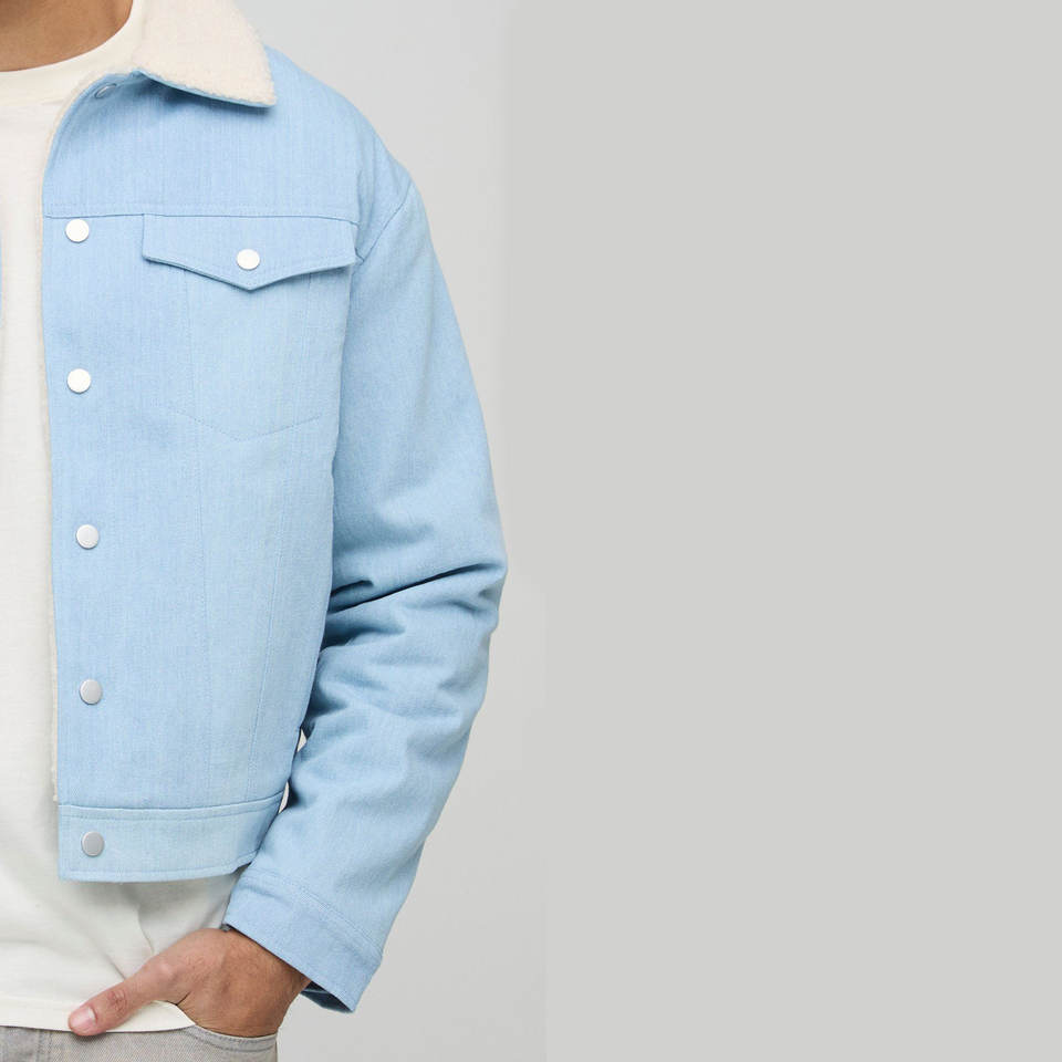 แจ็กเก็ตผ้าเดนิมสำหรับผู้ชายผ้าคอตตอนสำหรับ100% แห้งเร็วพิมพ์ลายสไตล์ไฮสตรีทพร้อมโลโก้ด้านหน้าผ้าแฟชั่น