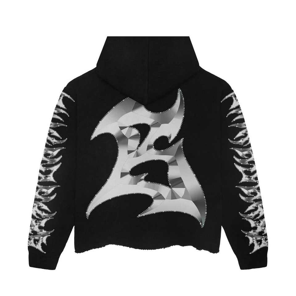 เสื้อฮู้ดดี้ผู้ชายสไตล์ฮิปฮอปสตรีทแวร์ทรงโอเวอร์ไซส์ ผ้าฝรั่งเศสเทอร์รี่ 100% ผ้าฝ้าย พิมพ์ลายด้วยเทคนิค DTG ประดับด้วยคริสตัล