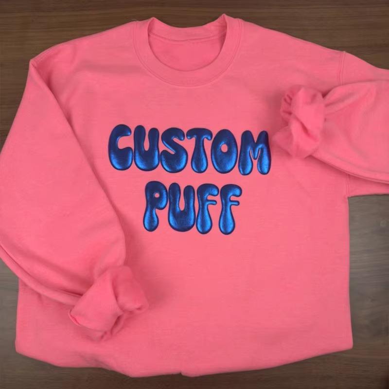 เสื้อสเวตเชิ้ตผ้าคอตตอนโอเวอร์ไซส์สำหรับผู้ชายเสื้อคอกลมพิมพ์ลายพัฟสำหรับฤดูใบไม้ร่วง100% ออกแบบได้ตามต้องการ