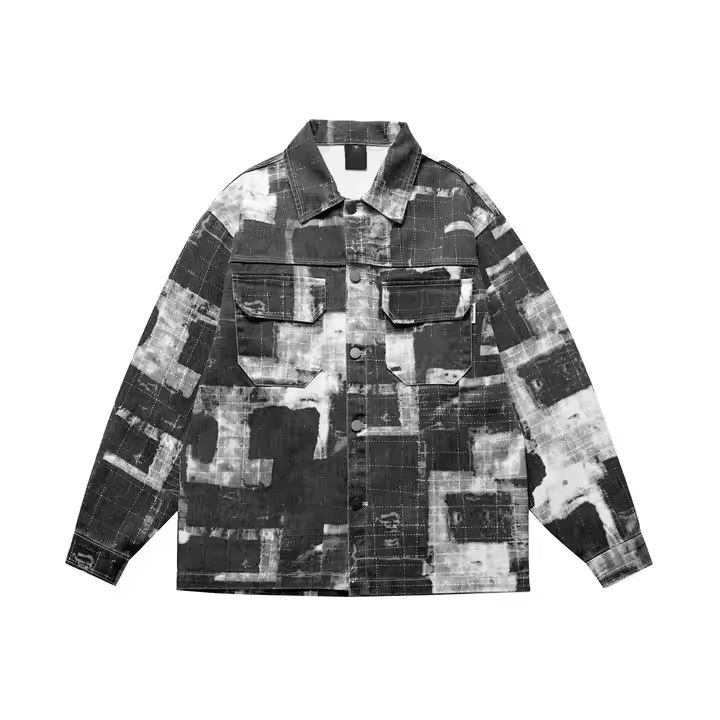 เสื้อแจ็กเก็ตใส่ทำงานผ้าฝ้าย100% สำหรับผู้ชายเสื้อเชิ้ตผ้ายีนส์ซักได้เสื้อตัวยาวพิมพ์ลายแบบหนาทำจากพรีเมี่ยม