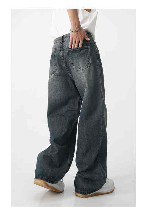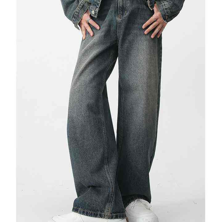 กางเกงยีนส์ขาบานเข้ารูปผู้ชาย, กางเกงยีนส์ขายาวทรงตรงสไตล์วินเทจ2025สีฟ้าทรงตรงใหม่