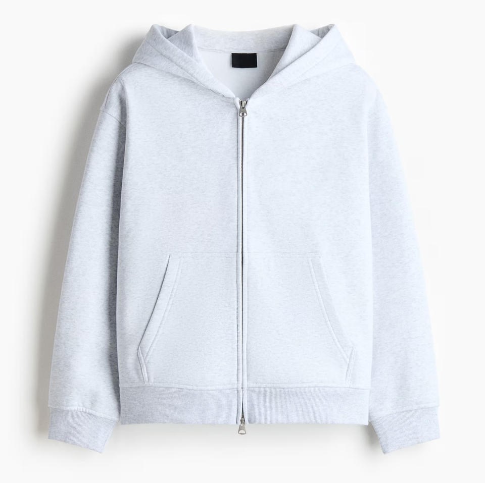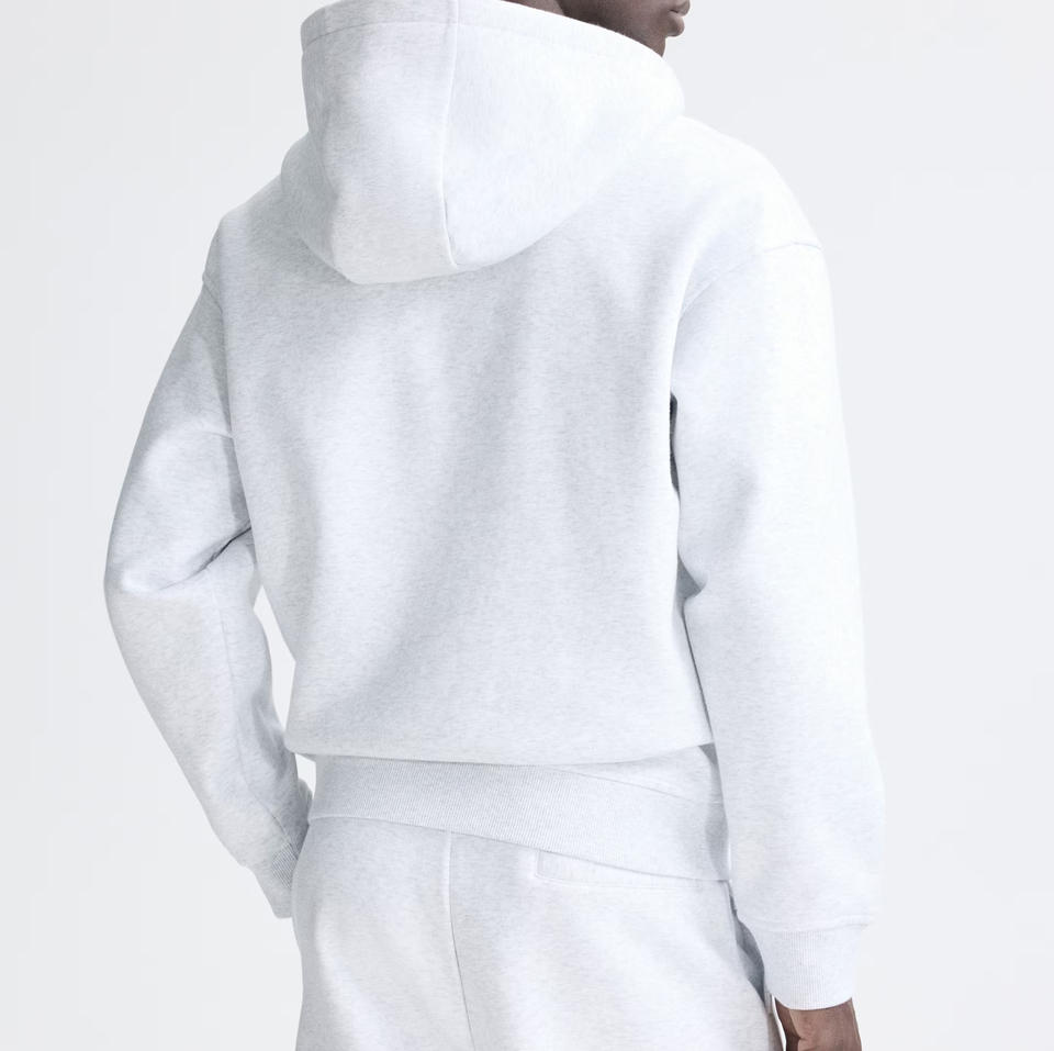 เสื้อฮู้ดดี้ผู้ชายทรงบ็อกซี่ น้ำหนัก 360 กรัม สีดำ ซิปหน้า พิมพ์โลโก้ ผ้าโพลีเอสเตอร์/คอตตอน ทรงโอเวอร์ไซส์ ซักแล้ว รักษ์โลก