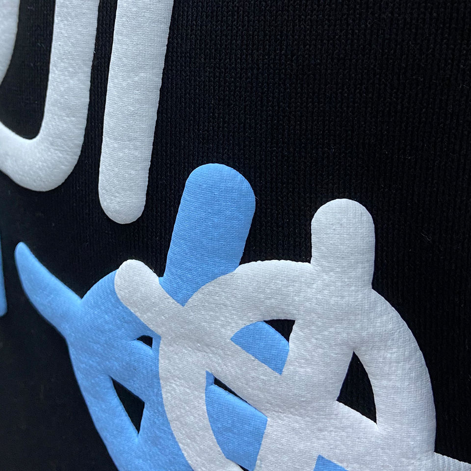 ชุดฮู้ดดี้ผ้าฝ้ายพิมพ์ลายโลโก้ 3 มิติ แบบกำหนดเองสำหรับผู้ชาย พร้อมกางเกงจ็อกเกอร์พิมพ์ลายนูน ชุดลำลองทรงหลวมสไตล์สปอร์ตสำหรับทุกเพศ