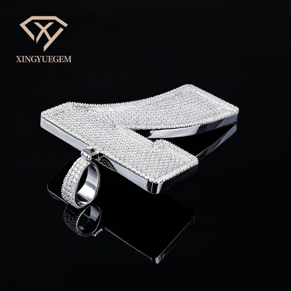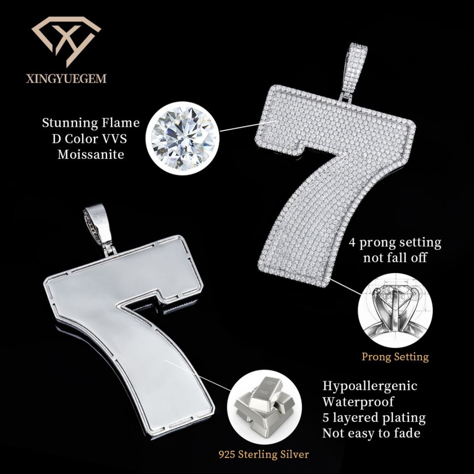 Custom Men's 925 Sterling Silver Jewelry Rhodium Plated Iced Out Round Brilliant Cut Moissanite 3D Number No.7 Hiphop Pendant