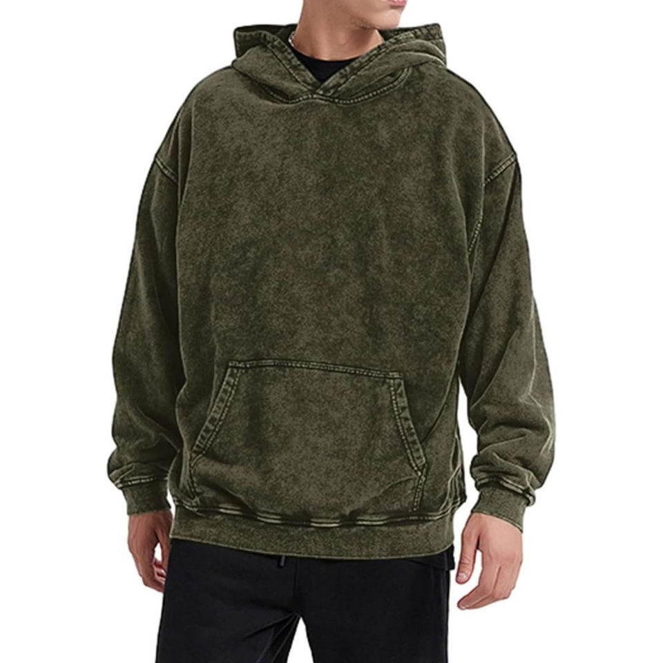 เสื้อฮู้ดดี้ผู้ชายสไตล์วินเทจฟอกสี ผ้าโพลีเอสเตอร์/คอตตอนฟลีซ คุณภาพสูง แบบเรียบ ย้อมสีดิจิตอล ระบายอากาศได้ดี เหมาะสำหรับฤดูหนาว