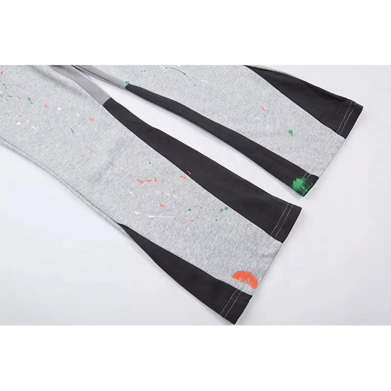 กางเกงวอร์มขาบานทรงแฟลร์ผ้าฝ้ายฟลีซสำหรับผู้ชาย ลวดลายย้อมสีแบบแอซิดวอช พร้อมป้ายปักโลโก้แบบดิสเทรส สไตล์ลำลอง