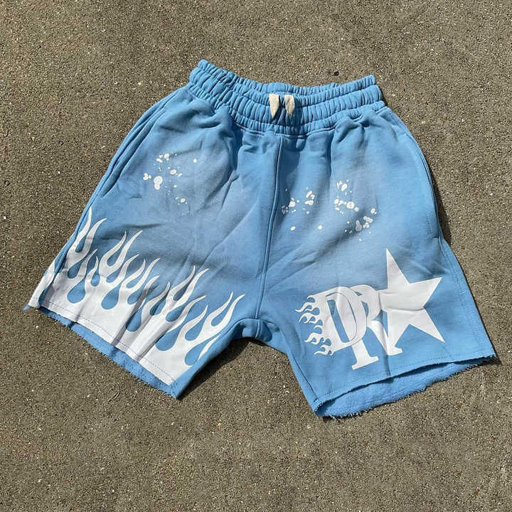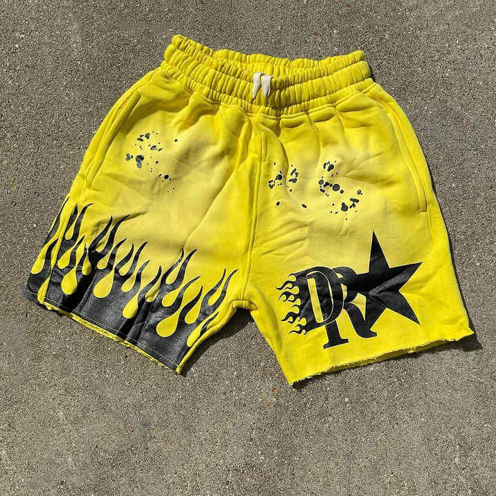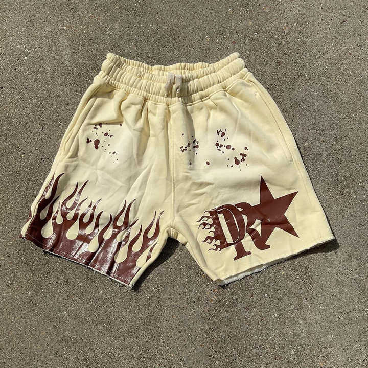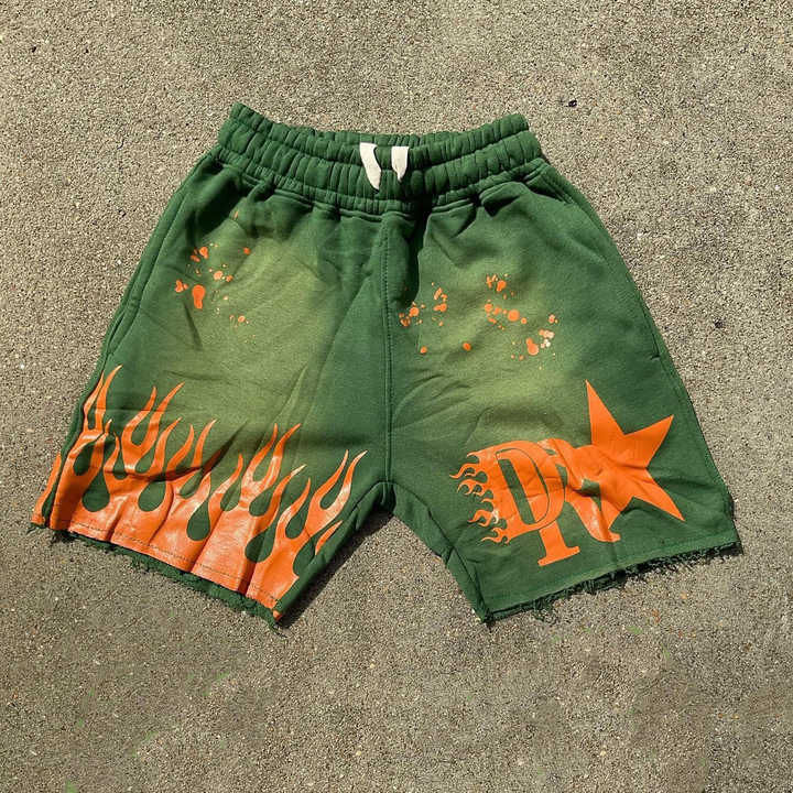 กางเกงขาสั้นผ้าฟลีซสำหรับผู้ชายกางเกงขาสั้นผ้าคอตตอนพิมพ์ลายมีสไตล์วินเทจซักได้ตามต้องการ
