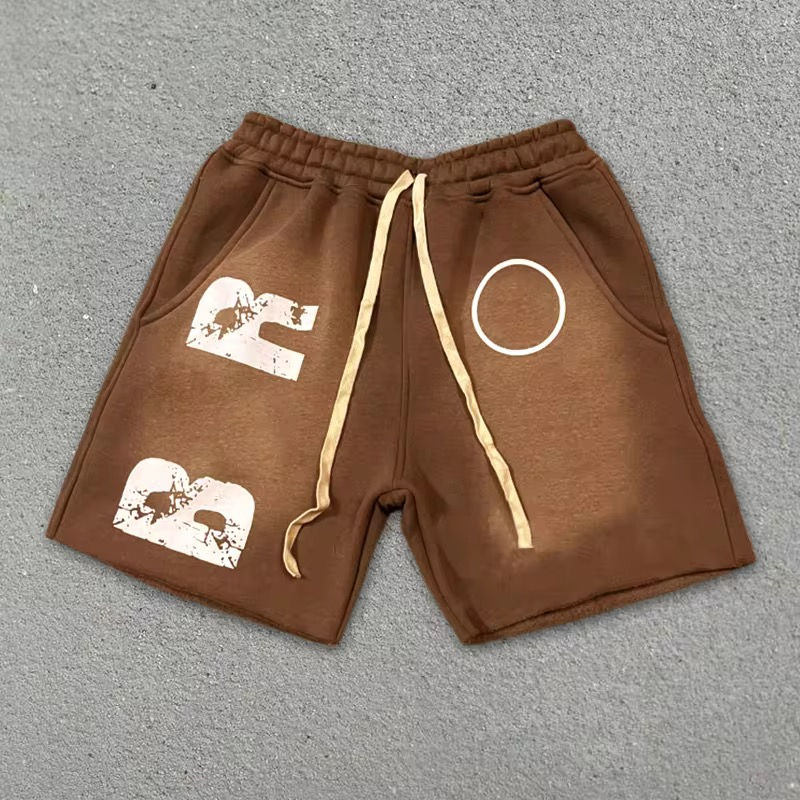 กางเกงขาสั้นผ้าฟลีซสำหรับผู้ชายกางเกงขาสั้นผ้าคอตตอนพิมพ์ลายสไตล์วินเทจซักได้ตามต้องการ
