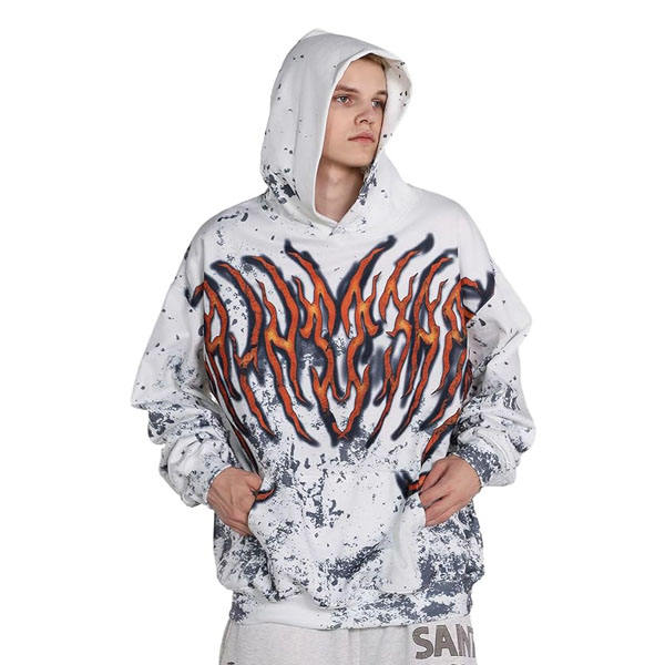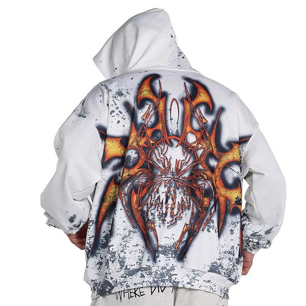 เสื้อฮู้ดกระเป๋ามีซิปสำหรับผู้ชายผ้าฟลีซผ้าฝ้าย100% ฟอกสีกรดแบบปักแห้งเร็วแบบกำหนดเอง