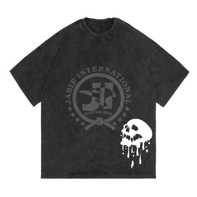 เสื้อยืดซักลายกรดของผู้ชายออกแบบได้ตามต้องการพิมพ์ลายกะโหลกกราฟิกวินเทจสีจางลงบนหน้าจอไหมขนาดใหญ่เสื้อผ้าแนวสตรีท