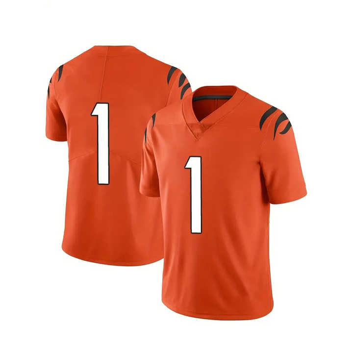 เสื้อฟุตบอลอเมริกันชายแบบสั่งทำพิเศษ แขนสั้น ป้ายชื่อส่วนตัวสำหรับแฟนๆ ระบายอากาศได้ดี แห้งเร็ว ปักลาย พิมพ์ลายแบบซับลิเมชั่น