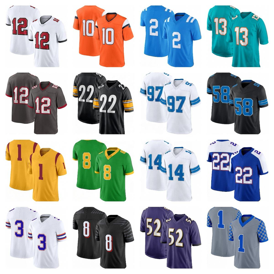 เสื้อฟุตบอลอเมริกันแบบสั่งทำสำหรับผู้ชาย ผ้าโพลีเอสเตอร์แบบซับลิเมชั่น ชุดทีมแบบสั้น ไซส์ใหญ่ หลายสี ดีไซน์ระบายอากาศได้ดี