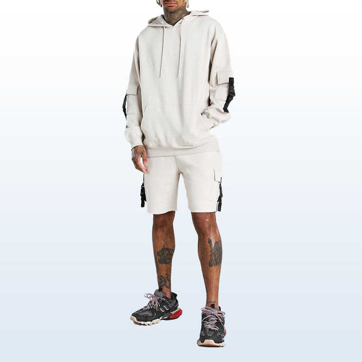 ชุดเซ็ตเสื้อฮู้ดและกางเกงขาสั้นผู้ชาย