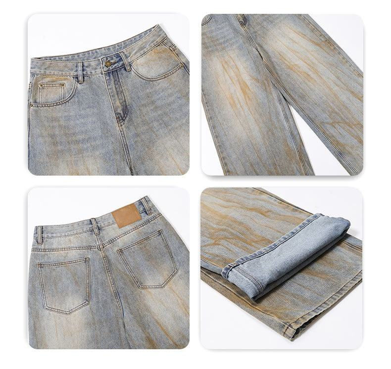 กางเกงยีนส์ทรงตรงผู้ชายแบบหลวม สไตล์วินเทจ ผ้าฝ้าย 100% ล้างสีแบบแอซิดวอช ตกแต่งกระดุม ระบายอากาศได้ดี ลายเรียบ
