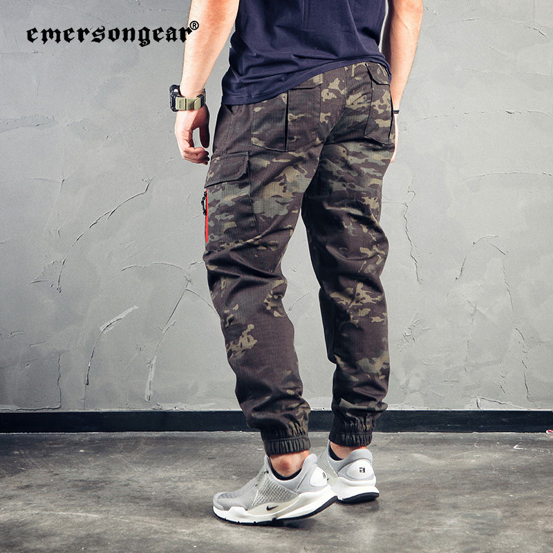 กางเกงคาร์โก้ผู้ชายแบบสั่งทำพิเศษ ผ้าแคนวาสพิมพ์ลายเต็มตัว ขากว้าง ลายพราง เอวยางยืดกลางลำตัว ทรงลำลอง กันน้ำ ระบายอากาศได้ดี