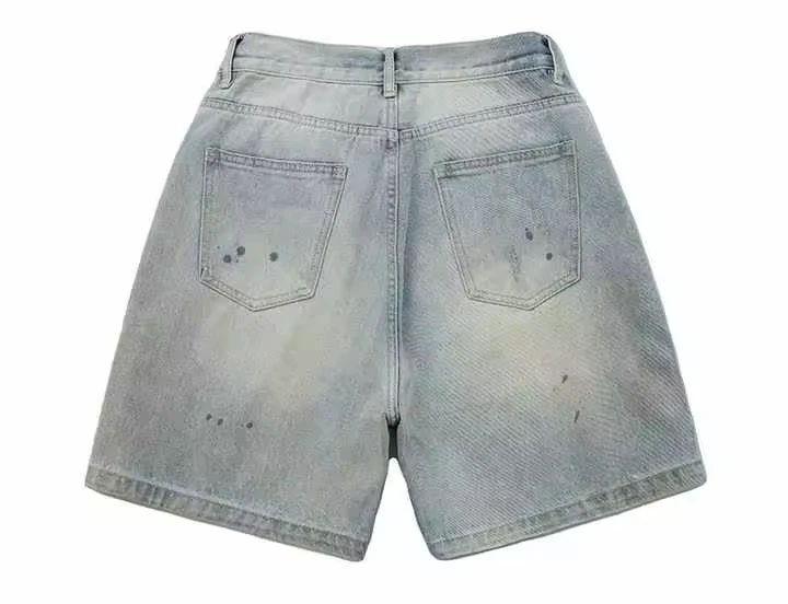 กางเกงขาสั้นวินเทจสไตล์สตรีทแวร์สำหรับผู้ชายกางเกงขาสั้นสีดำแฟชั่นกางเกงยีนส์ลำลองพิมพ์ลายทรงหลวมสำหรับฤดูร้อน