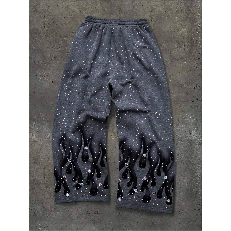 กางเกงวอร์มทรงหลวมพิมพ์ลายกราฟิก Y2K สำหรับผู้ชาย เอวยางยืดพร้อมเชือกผูก ระบายอากาศได้ดี ผลิตจากผ้าฝ้าย สไตล์สตรีทแวร์