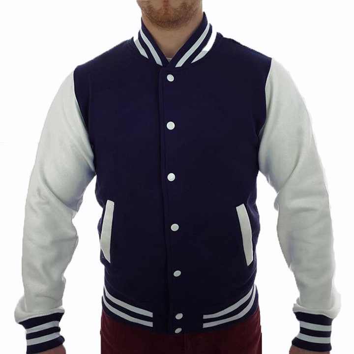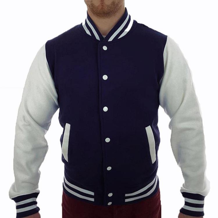แจ็กเก็ตเบสบอลของผู้ชายแบบสั่งทำโดยผู้ผลิตหนังขนาดใหญ่สีดำมีปกตั้งผ้าใบขนาดพิเศษสำหรับวิทยาลัย