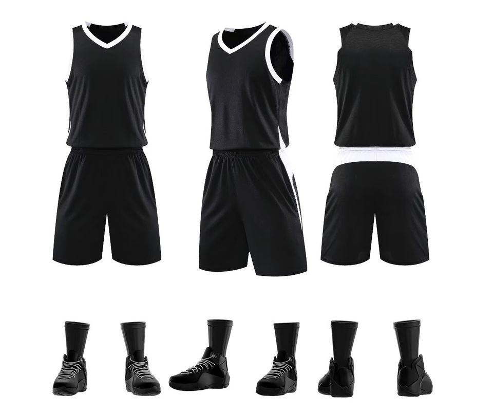 เสื้อบาสเก็ตบอลสำหรับผู้ชายเครื่องแบบชุดกีฬาแขนกุดตัดอัตโนมัติแบบสองด้านแห้งเร็วผลิตตามสั่ง