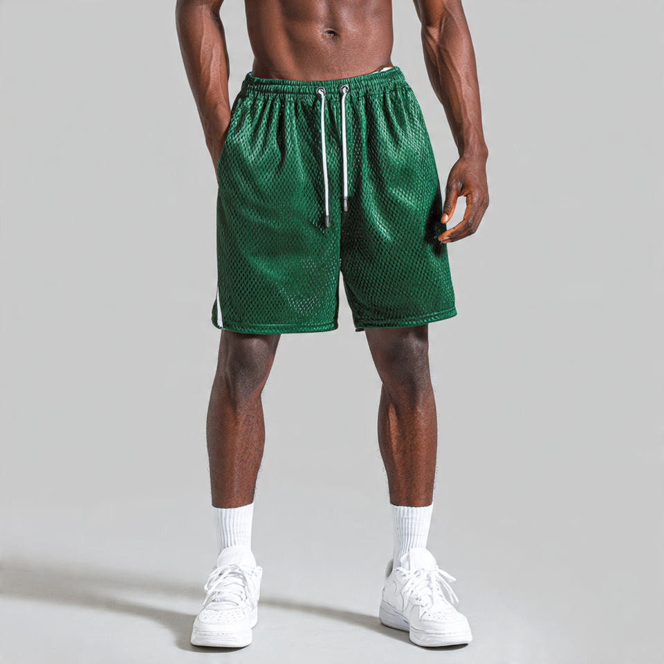 กางเกงบาสเก็ตบอลตาข่ายผู้ชายแบบสั่งทำพิเศษ เอวแบบรูดเชือก แห้งเร็ว กางเกงบาสเก็ตบอลตาข่ายผู้ชายสั่งทำพิเศษ