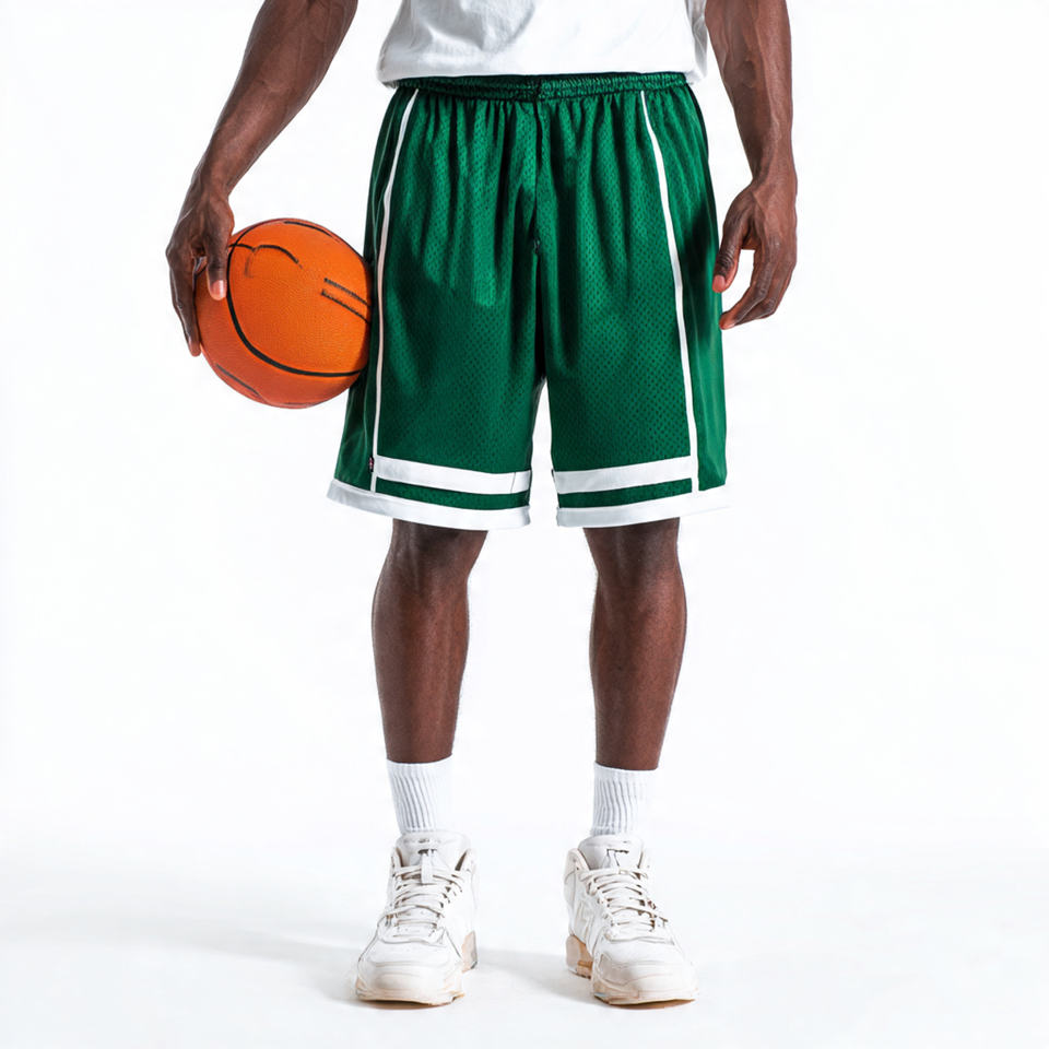 กางเกงบาสเก็ตบอลขาสั้นผ้าตาข่ายโพลีเอสเตอร์ 100%
