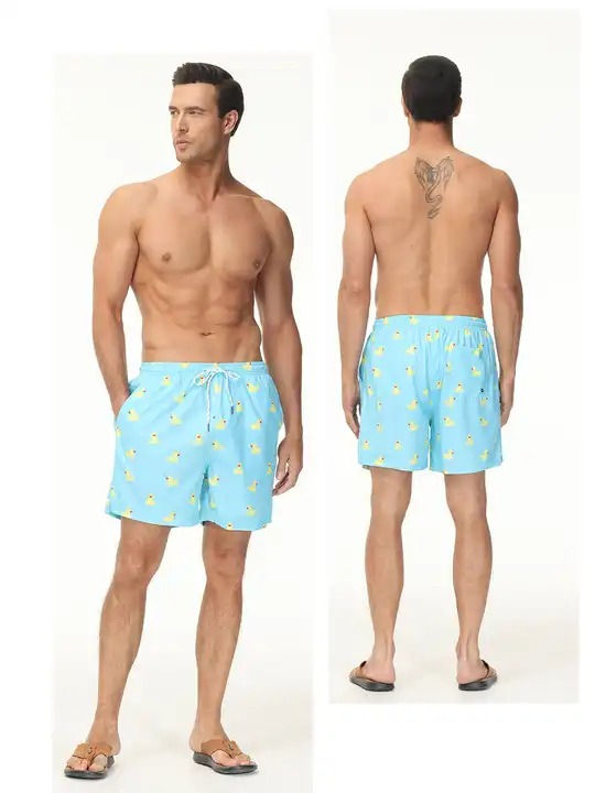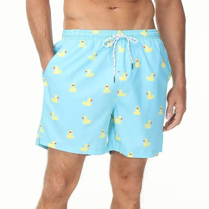 กางเกงขาสั้นชายหาดของผู้ชายกางเกงขาสั้นชายหาดเข้ารูปแบบคลาสสิกแห้งเร็วชุดว่ายน้ำพิมพ์โลโก้ได้ตามต้องการ