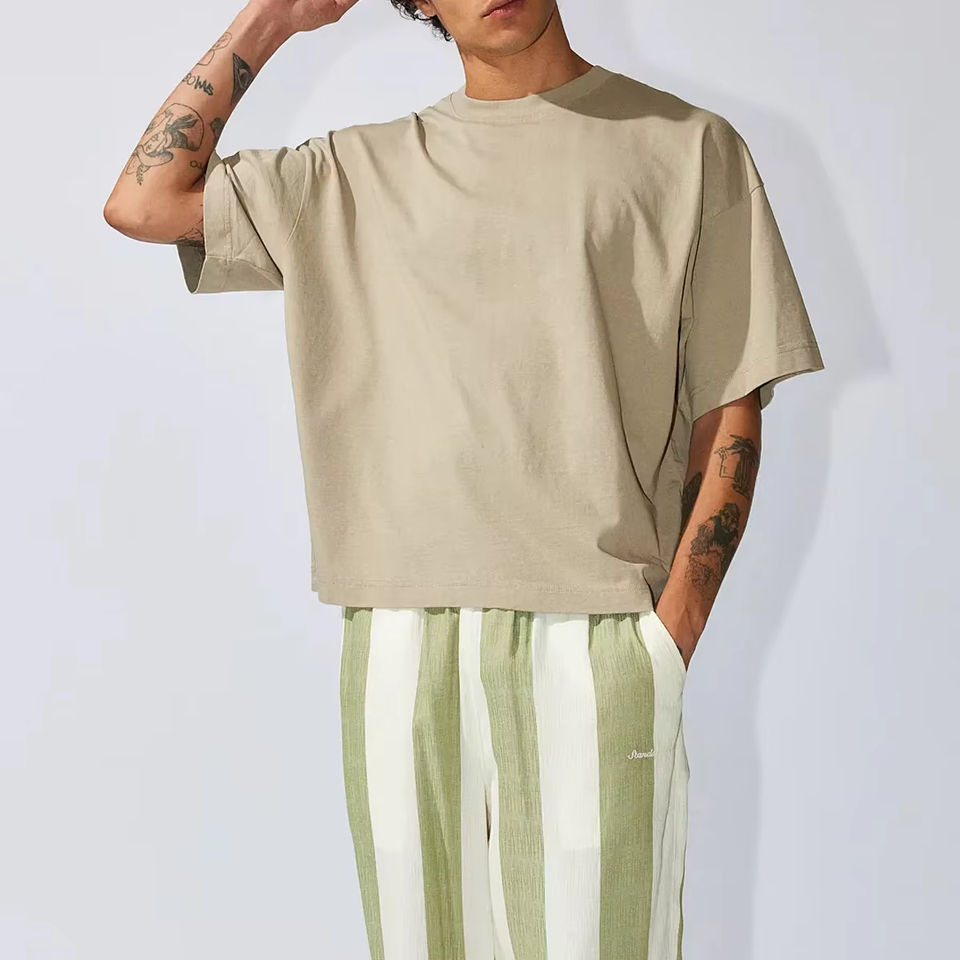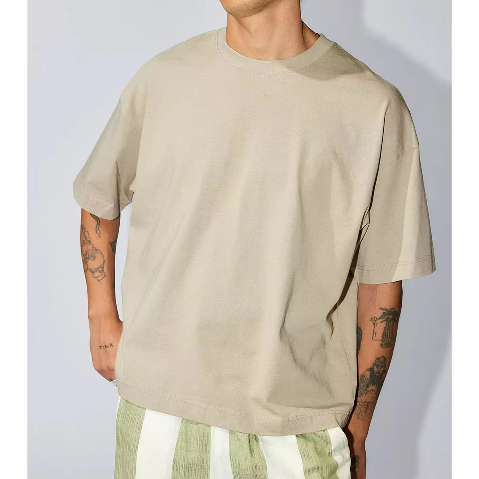 เสื้อยืดทรงบ็อกซ์สีขาวล้วนสำหรับผู้ชาย แบบเรียบง่าย ไซส์ใหญ่พิเศษ น้ำหนัก 250 กรัม ผ้าฝ้าย 100% ทรงบ็อกซ์ฟิตแบบครอป