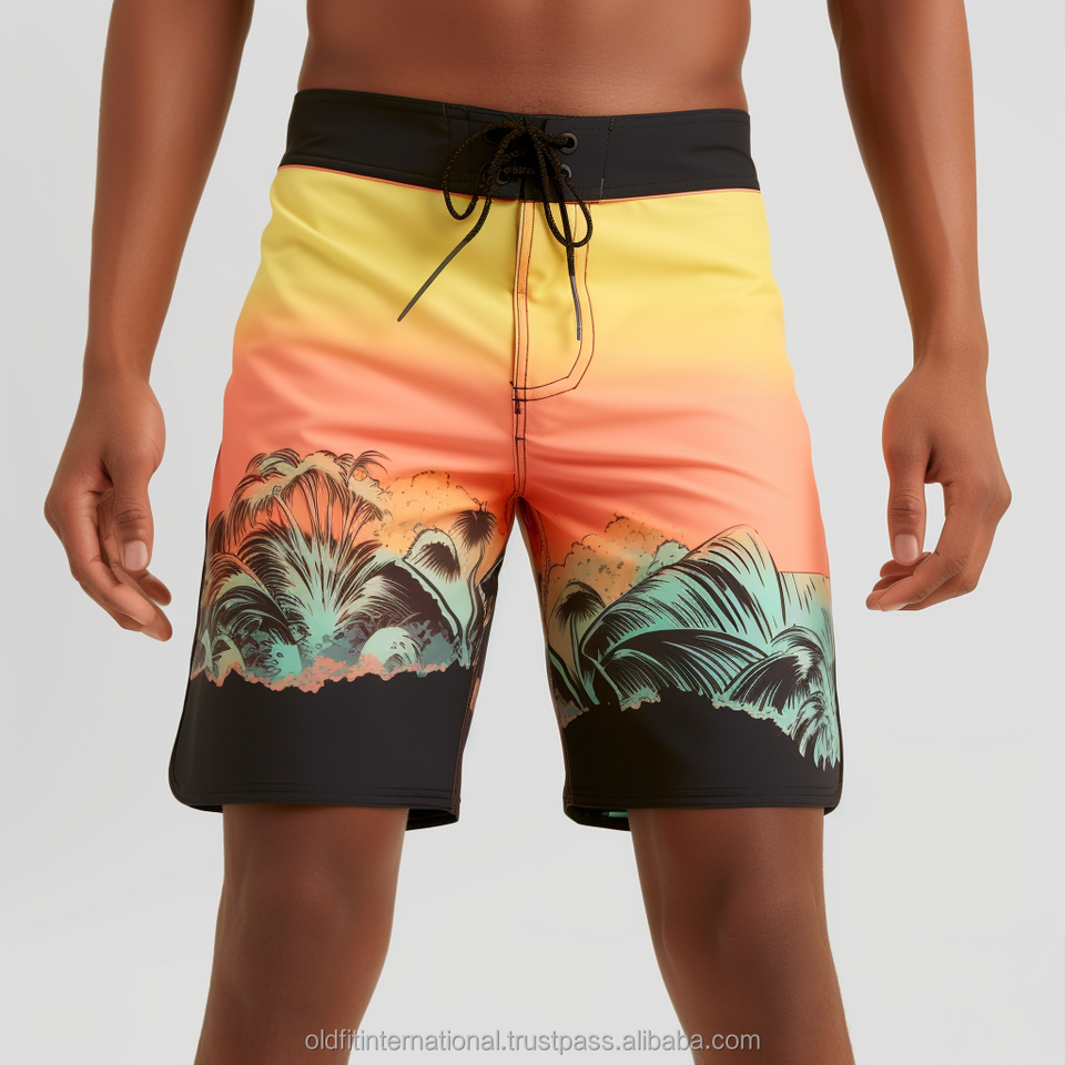 กางเกงว่ายน้ำชายหาดสำหรับผู้ชายกางเกงว่ายน้ำพิมพ์ลายพิมพ์ซับลิเมชันโลโก้ฟิตเนสและผ้าสแปนเด็กซ์ทำจากโพลีเอสเตอร์และผ้าสแปนเด็กซ์