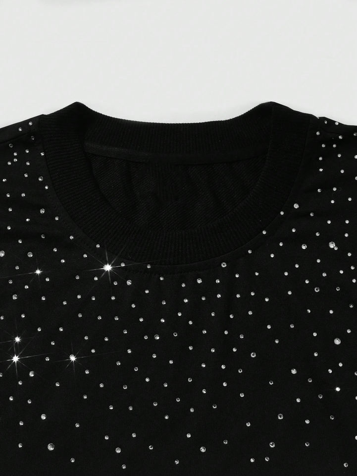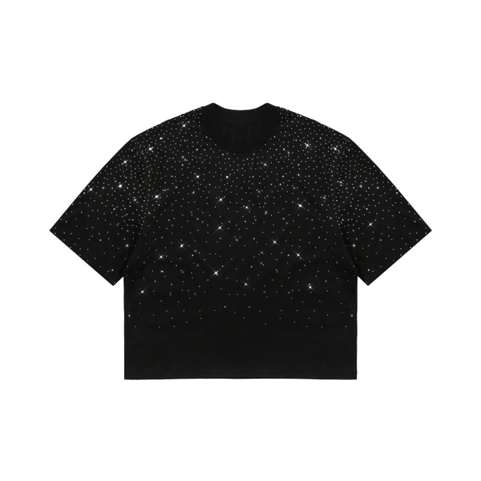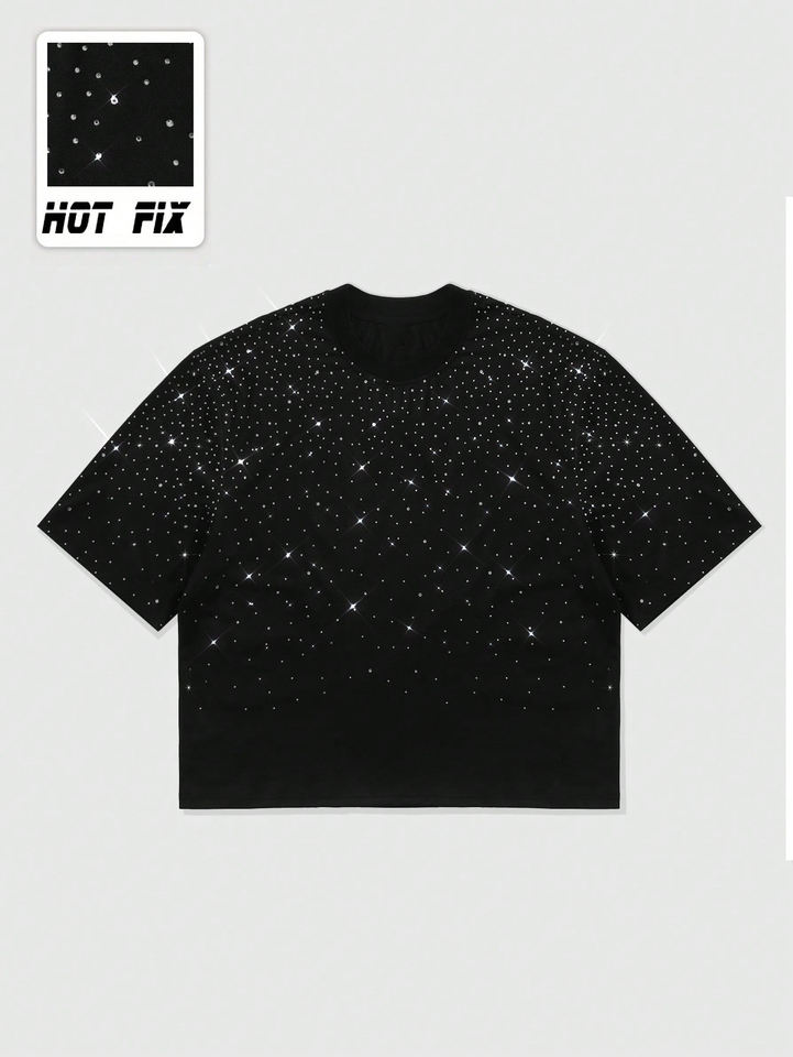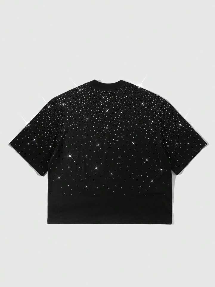 เสื้อยืดบ็อกซี่สำหรับผู้ชายงานตามสั่งสไตล์สตรีท2000S น้ำหนักมากประกายเพชรพลอยเทียมดีไซน์ว่างเปล่าพิมพ์สกรีนผ้าไหม