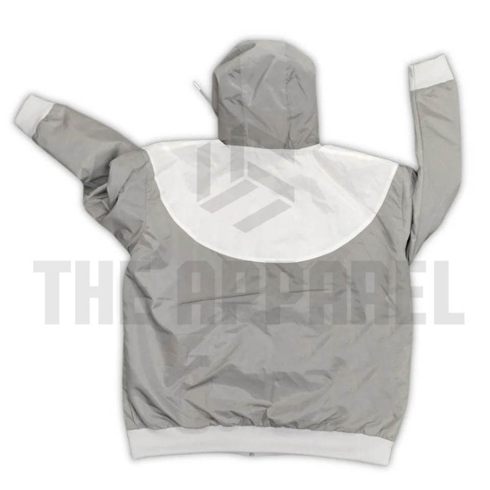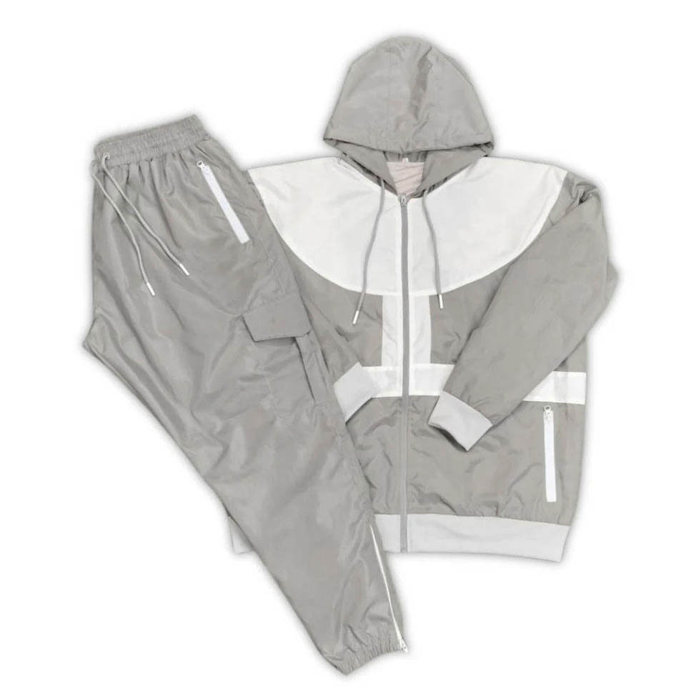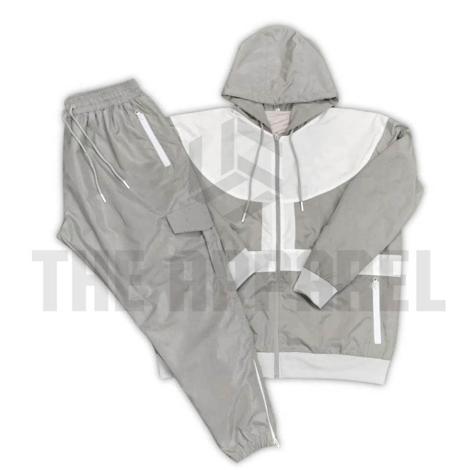 ชุดวอร์มผู้ชายผ้าไนลอนระบายอากาศดี ลายเรียบ ชุดสองชิ้น กางเกงจ็อกเกอร์พร้อมแจ็คเก็ตมีซิป