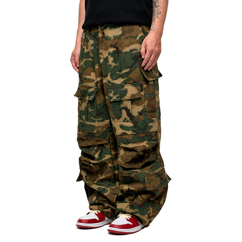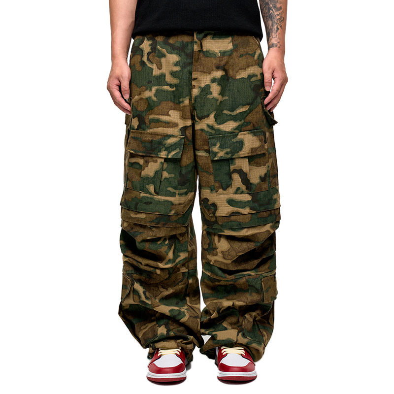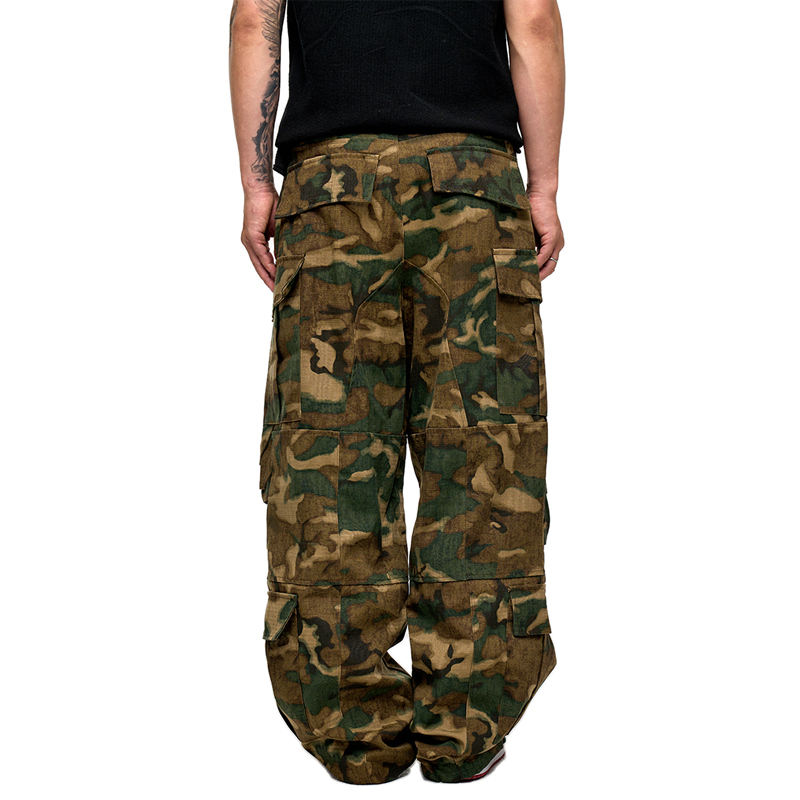 กางเกงยีนส์นักขี่จักรยานทรงตรงเข้ารูปปกติสไตล์ Y2K กางเกงทรงหลวมรัดรูปสำหรับผู้ชายพิมพ์ลายพรางออกแบบได้ตามต้องการ