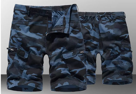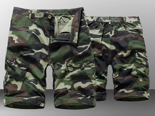 กางเกงขาสั้นคาร์โก้ผู้ชายลายพรางแบบเรียบ ผ้าฝ้าย 100% เอวกลาง ยางยืด ใส่สบาย เหมาะกับกิจกรรมกลางแจ้ง ออกกำลังกาย มีโลโก้ สำหรับฤดูร้อนและชายหาด