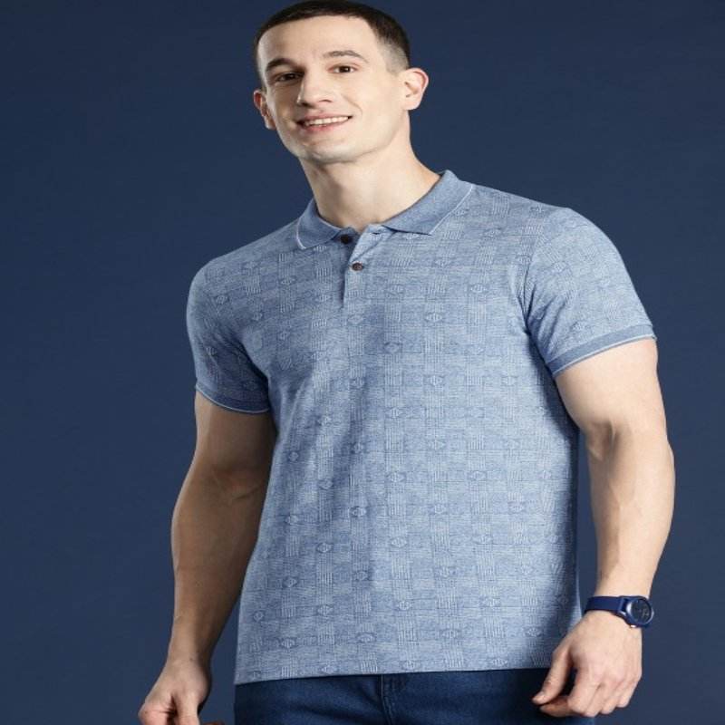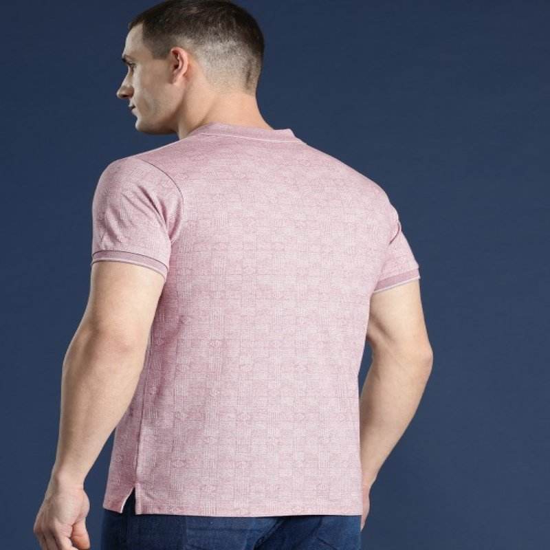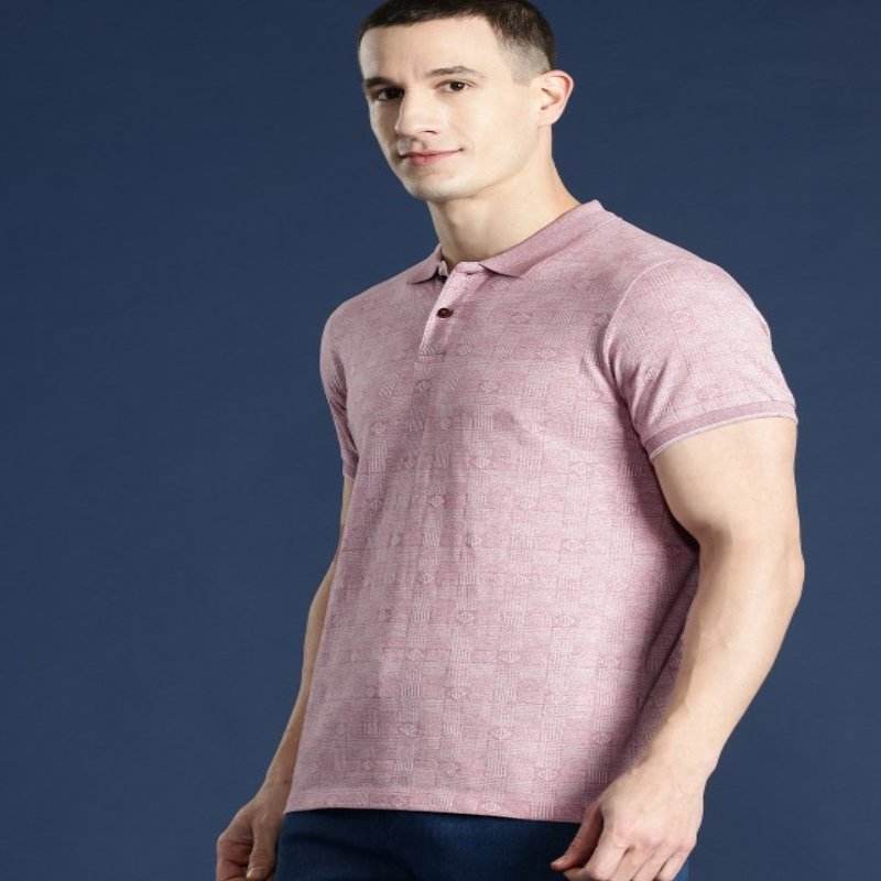 เสื้อยืดสำหรับผู้ชายสีฟ้าและสีชมพูแบบลำลองผ้าแจ็คการ์ดโพลีเอสเตอร์45% ผ้าฝ้ายโปโล52% ทำจากผ้าถักอินเดีย