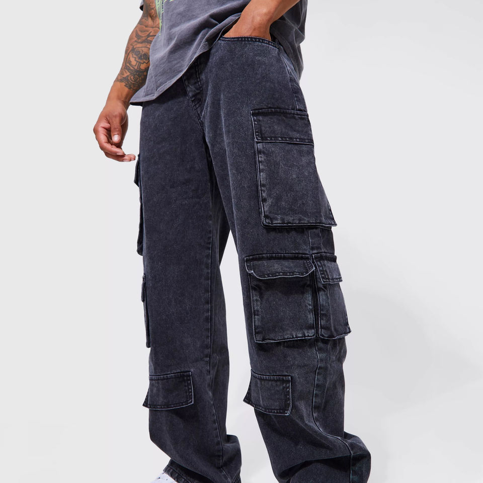 กางเกงยีนส์เดนิมทรงตรงเอวกลางสีเข้มสำหรับผู้ชาย สวมใส่สบาย น้ำหนักเบา ระบายอากาศได้ดี พร้อมลายปัก