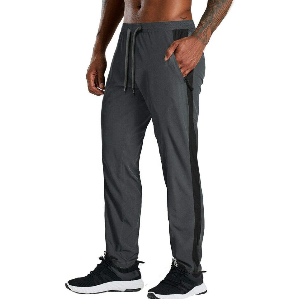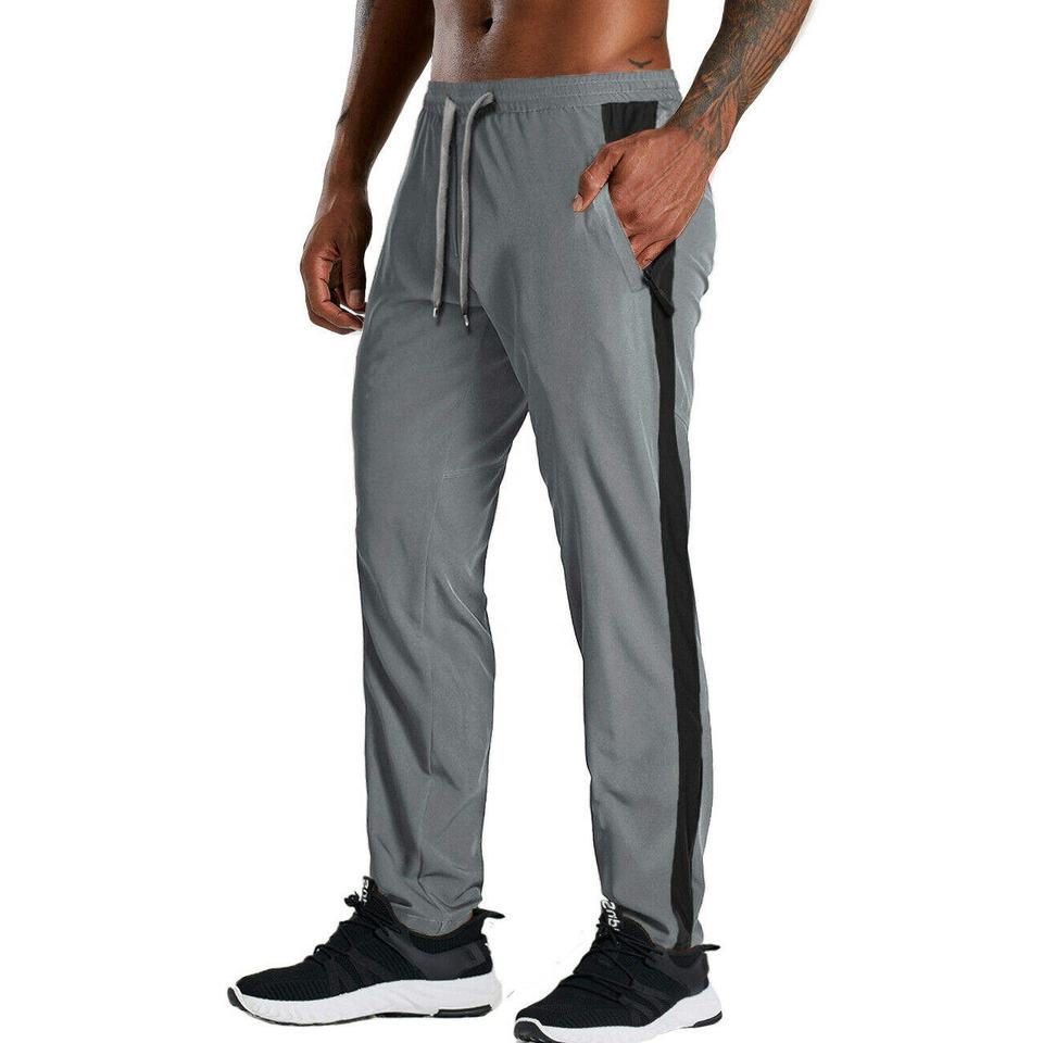 กางเกงจ็อกเกอร์ลำลองผู้ชายลายทางแบบสบายๆ เป็นมิตรกับสิ่งแวดล้อม ระบายอากาศได้ดี เอวกลาง ผลิตจากโพลีเอสเตอร์ 100% ผ้าเฟรนช์เทอร์รี่น้ำหนักเบา