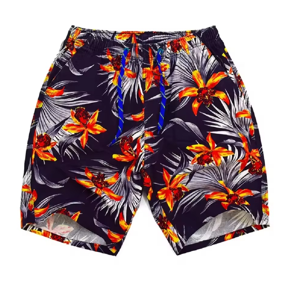 กางเกงขาสั้นว่ายน้ำชายหาดสำหรับผู้ชายกางเกงขาสั้นผ้าคอตตอนพิมพ์ลายสีพื้นพิมพ์แบบซับลิเมชันดีไซน์แตกต่างกันสำหรับฤดูร้อน