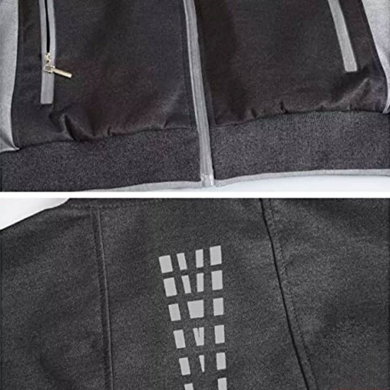 ชุดวอร์มลำลองผู้ชายแบบซิป ผ้าฟลีซ แห้งเร็ว เหมาะสำหรับฤดูหนาว เสื้อฮู้ดดี้และกางเกงขายาว ชุดเซ็ตเรียบง่าย สไตล์แทรคสูท