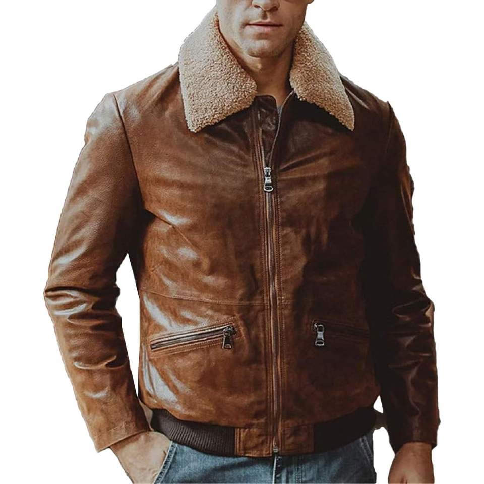 เสื้อแจ็คเก็ตหนังทรงนักบิน A2 แบบคลาสสิกสำหรับผู้ชาย พร้อมปกขนสัตว์ กันลม สไตล์นักขี่มอเตอร์ไซค์ เหมาะสำหรับฤดูหนาว
