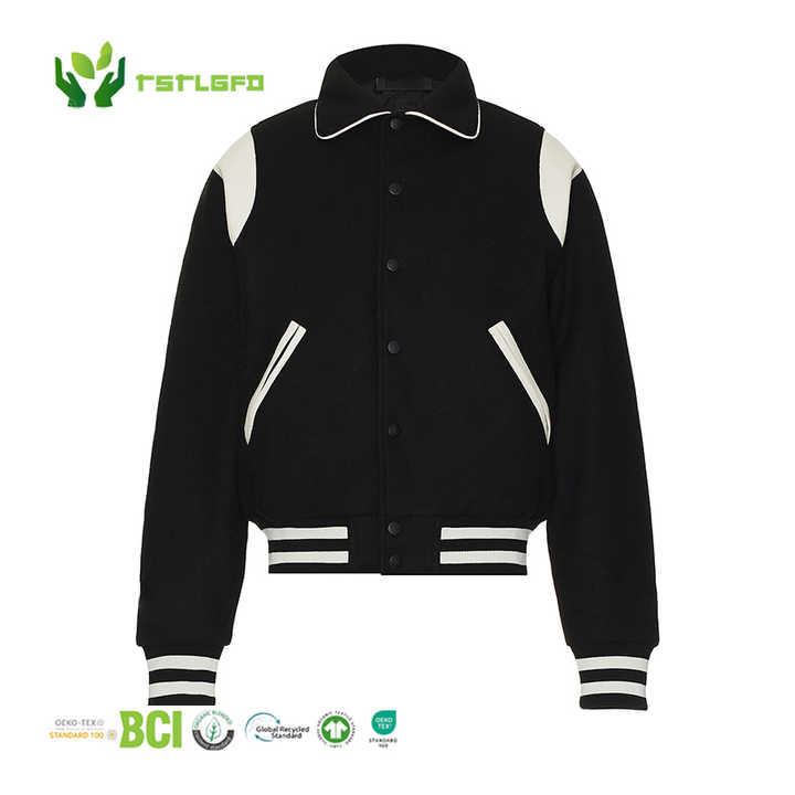 แจ็กเก็ตเบสบอลบอมเบอร์ทีมโรงเรียนของผู้ชายแจ็คเก็ตหนังแขนยาวปักลายเป็นมิตรกับสิ่งแวดล้อม